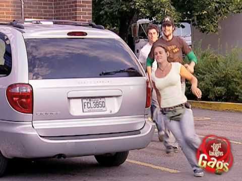 Автомобили людей прячут в стенде хот-дога, в то время когда они забегают в магазин что-то купить.