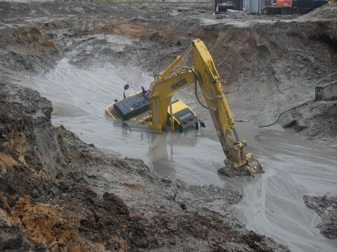Поясняю: Детёныш бульдозера заигрался и завяз. Мама-бульдозер полезла спасать.