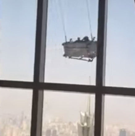 Из-за сильного ветра двое мужчин, занимавшихся мытьем окон в Шанхайском финансовом центре на высоте 91-го этажа, попали в смертельную ловушку: люлька, в которой находились рабочие, начала описывать круги и биться о стекло.