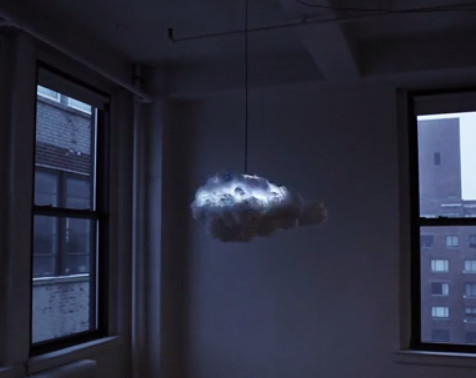 Это не туча интерактивная, это лампа такая в виде тучи, со звуком грома, на светодиодах, У нас такие лампы ещё в СССР были даже лучше, может вид был немного другой, но принцип действия примерно такой-же. А называлась она тогда просто: цветомузыка )
