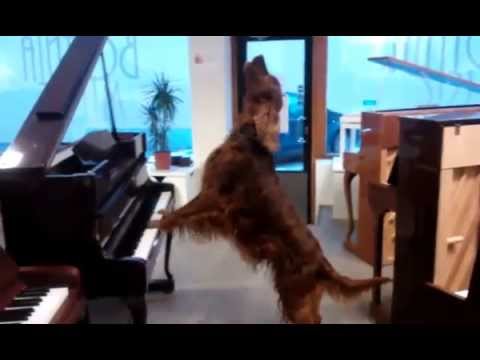 Этому ирландскому сеттеру, очень нравится петь и играть на рояле