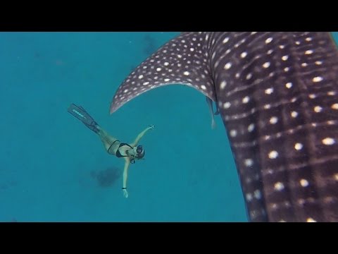 Китовая акула и девушка