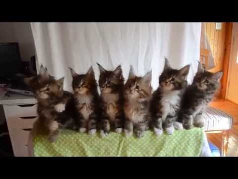 Эти семеро котят похожи друг на друга как две капли воды. Наверное поэтому они так одинаково реагируют на игрушку