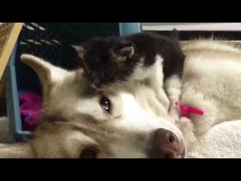 Собака, у которой никогда не было щенков, стала приёмной матерью для новорожденного котенка.