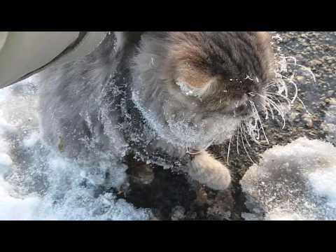 Кошка, решившая поохотиться на улице, попала в очень неприятную ситуацию. После непродолжительного нахождения на снегу ее лапки вмерзли в лед. Не известно, какой была бы судьба у несчастного животного, если бы не помощь людей.