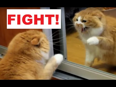 Кот испугался своего отражения