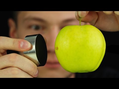 1. Яблоки и магнит. Положите 2 яблока на противоположные концы палочки и после этого поднесите магнит очень близко.
