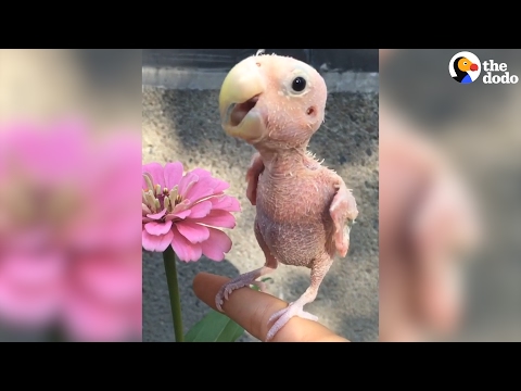 Когда-то эта пташка переболела вирусной инфекцией и утратила все свои пёрышки, а заодно и родное гнездо. Девушка по имени Рея стала новой мамой для малютки. Теперь птица каждый день поёт и радуется жизни!