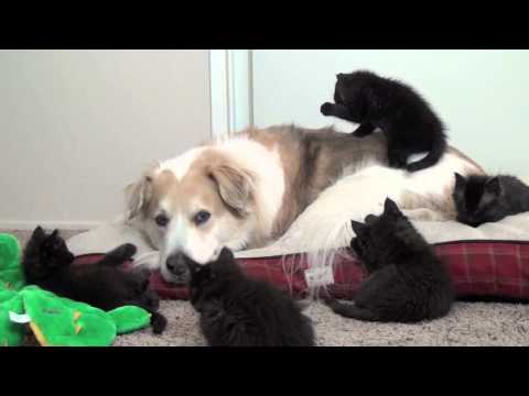 Не повезло собачке: поблизости оказалась кучка энергичных и не в меру любознательных котят. Они не смогли пройти мимо большого животного, не пообщавшись!