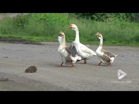 Ежу досталось солидное сопровождение – три гордых тамбовских гуся. Они взяли его под свою опеку пока он перебегал дорогу.