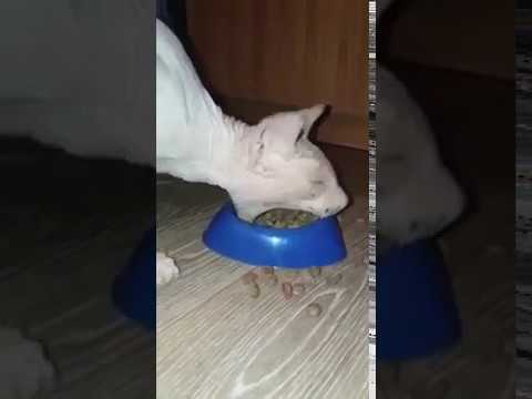 Да....., свиноты хозяева. Морили голодом, чтобы снять это видео. Бедный кот.
