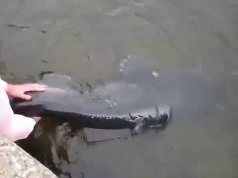 Ручной чернобыльский сом Гоша любит ласку и внимание.