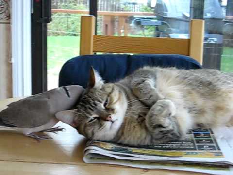 Кошка Лейла и голубь Арк-ан-Сиэль (Радуга) и их повседневные развлечения.