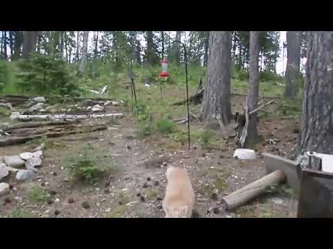 Бесстрашный рыжий кот запугал медведя и загнал его на дерево.