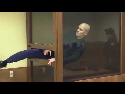 Подсудимый пытаеся убежать прямо из клетки в зале суда. Плицейские пытаются ему помешать...