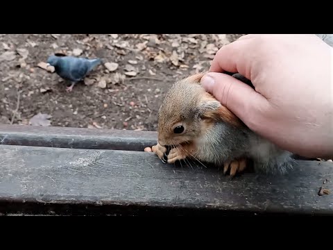 Голуби хотели украсть у белочки орешки, но не тут-то было...