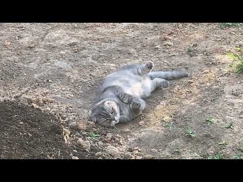 Про то, как котик Бусинка радуется возможности поваляться в пыли на пробуждающейся после зимы земле