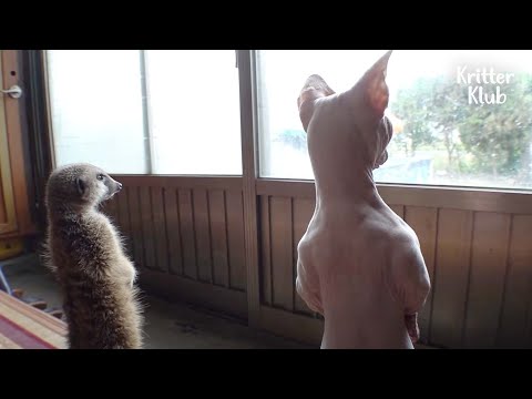 Кот просто копирует суриката, чтобы быть его другом (Часть 1) | Криттер Клуб