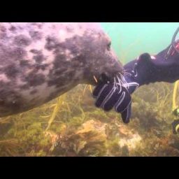 Ластоногому так понравились ласки и щекотка человека, что он полностью расслабился и, судя по его виду, выглядит очень удовлетворенным.