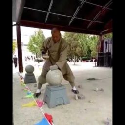 Эффектное уничтожение камней голыми руками от мастера кунг-фу. Для закрепления эффекта не хватало только расколотого головой шара.
