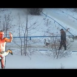 Мужчина толкует с гусем на его языке!