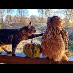 Кошка Морошка потрогала сову Ёлку за секретное место! Возмутительно! Сова красивеет в лучах осени