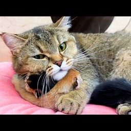 Мама кошка крепко обняла новорожденных котят, пока я убираю в их домике. После рждения котят всегда много хлопот. Мама кошка Баси родила два дня назад очаровательных четверых котят. В первый день их жизни малышей котят надо обязательно взвесить. Очень важно понимать как они набирают вес. Бывает так, что один котенок слабый и более крепкие братья не дают ему кушать. Пока я чистила домик мамы кошки, я положила котят на мягкую подушку. Тут же мама кошка Баси пришла и крепко обняла своих мяукающих малышей котят ...