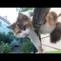 Кошки умеют спать буквально навесу. Им ничего не стоит прикорнуть на колышущейся от ветра ветке дерева или перилах балкона. При этом кошки никогда не падают во сне.