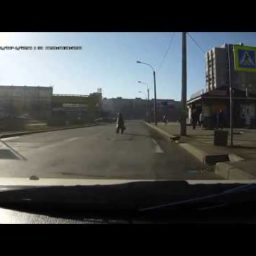 Подъехав к пешеходной «зебре», машина остановилась. В этот момент через дорогу быстро перешла кошка, которая терпеливо дожидалась на обочине, пока проезжая часть не станет свободной