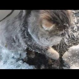 Кошка, решившая поохотиться на улице, попала в очень неприятную ситуацию. После непродолжительного нахождения на снегу ее лапки вмерзли в лед. Не известно, какой была бы судьба у несчастного животного, если бы не помощь людей.