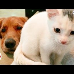 Собака воспитала кошку