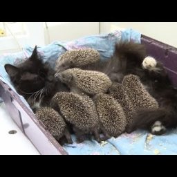 Мама Муся: кошка усыновила восьмерых ёжиков-сирот