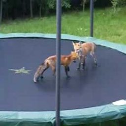 Два бесшабашных рыжих хищника предаются веселью на батуте!