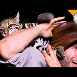 Встретив человека, котенок оцелота захотел поиграть с ним. В результате получился занимательный сюжет к очередной телепередаче.