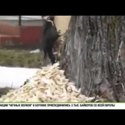 Дятел так долго стучит по дереву, что буквально выдалбливает заметную часть ствола. Кажется, еще немного — и дерево упадет.