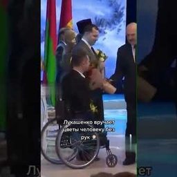 Лукашенко вручает цветы инвалиду без рук